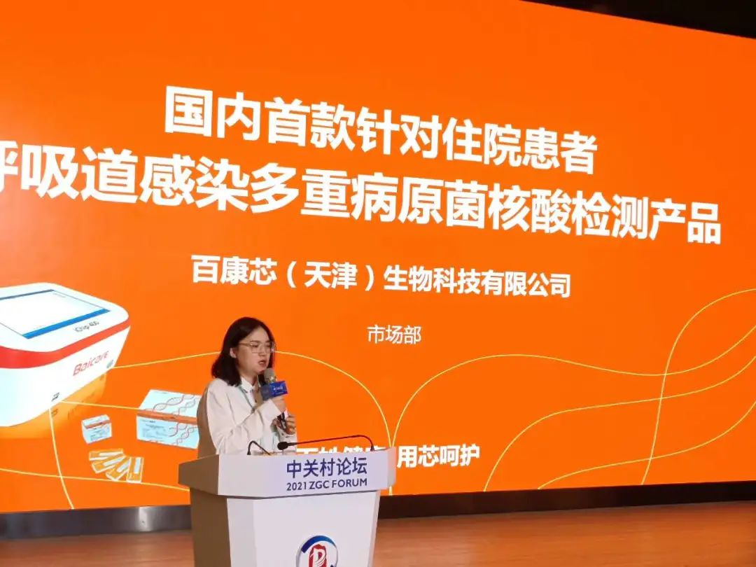 中關(guān)村論壇國際技術(shù)交易大會(新技術(shù)新產(chǎn)品首發(fā)與推薦大會)上,百康芯市場總監(jiān)白雅麗女士帶來了《國內(nèi)首款針對住院患者的呼吸道多病原核酸檢測產(chǎn)品》報告,詳細講述了該產(chǎn)品可實現(xiàn)一次加樣多指標(biāo)并行檢測,以更加簡捷的方法和更短的檢測時間對多種病原體進行檢測、分析和報告。為臨床醫(yī)生提供快速而準(zhǔn)確的檢測結(jié)果,減少病人等待的窗口期和治療周期,為臨床經(jīng)驗用藥提供科學(xué)依據(jù)。 ![]() ![]()
