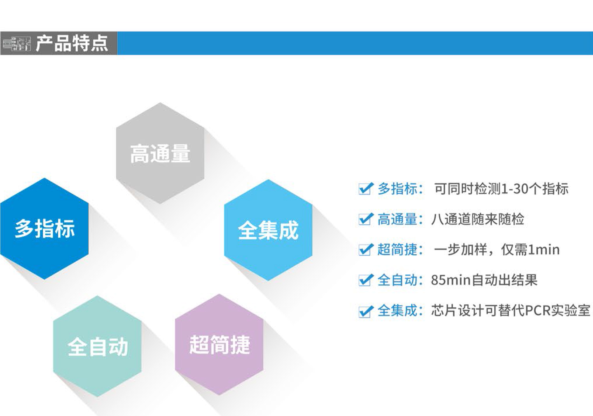 Onestart-1000全集成微流控芯片核酸檢測系統(tǒng)將復雜樣品破碎技術、磁珠核酸提取技術、微流控芯片PCR技術三大技術全集成在一起,可以一次對1-60種常見致病菌及其耐藥分型進行快速檢測(1.5小時內(nèi)),解決了傳統(tǒng)病原體培養(yǎng)法手工操作繁瑣、周期長、檢出率低等問題,對傳染病檢測、食品安全監(jiān)控、反恐監(jiān)測有著重要意義。系統(tǒng)可鏈接物聯(lián)網(wǎng),自動上傳檢測數(shù)據(jù),實現(xiàn)樣本的在線監(jiān)測、分析、預警和溯源。