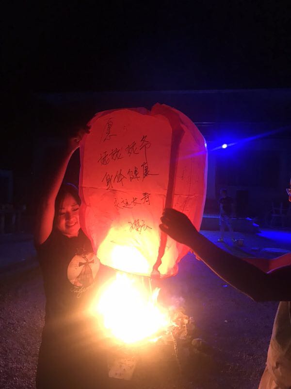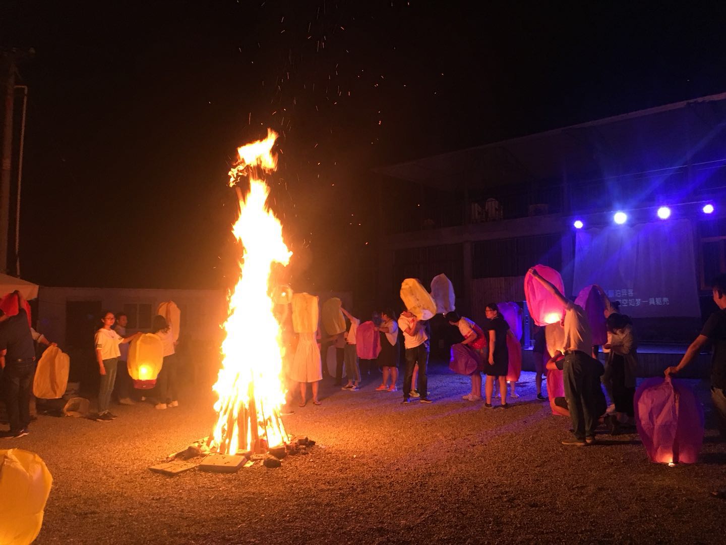 走過驚險刺激的玻璃棧道,回去吃個晚飯壓壓驚。 團建活動part 3:篝火晚會 篝火晚會可是本次團建中“小芯”最期待的環(huán)節(jié)呢!大家圍坐在農(nóng)家小院,點燃篝火,伴著美妙的音樂,放飛寫滿自己心愿的孔明燈。