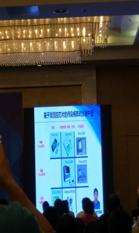 會議期間中國科學院大連化學物理研究所林教授做了關(guān)于“微流控芯片—POCT產(chǎn)業(yè)崛起的科學技術(shù)支撐”的演講報告,特別著重介紹了百康芯生物在此領(lǐng)域的發(fā)展成果—即時分子診斷產(chǎn)業(yè)化的一個案列,并介紹公司成功研制出來的即時診斷產(chǎn)品。林教授所在的大連